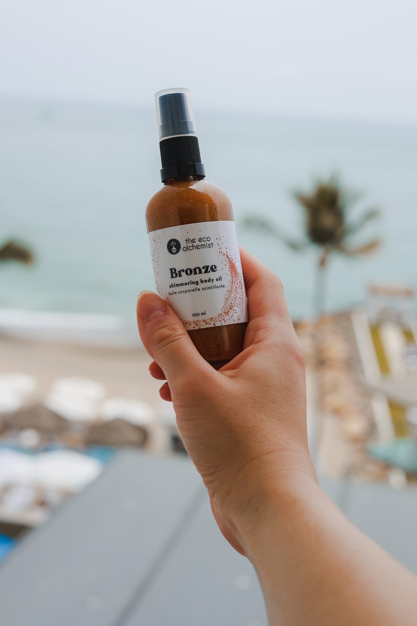 Glimmer and glow with our luxurious Bronze Shimmering Body Oil. Infused with radiant, light-reflecting mineral pigments, this velvety formula glides effortlessly onto the skin, leaving behind a sun-kissed, golden glow that’s perfect for every occasion. Wrap yourself in the irresistible scent of tropical coconut – a warm, beachy aroma that instantly transports you to sun-soaked shores with every application.
