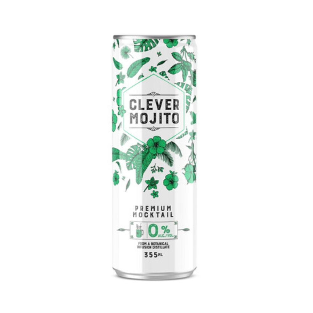 Clever Mocktails Mojito Premium Mocktail is made from a botanical infusion distillate. 0% alcohol.