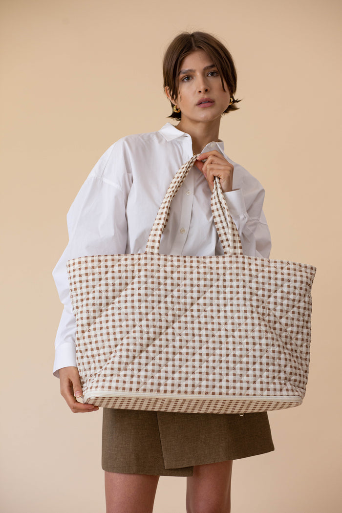 ela Quilted Expandable Tote – Gingham Print