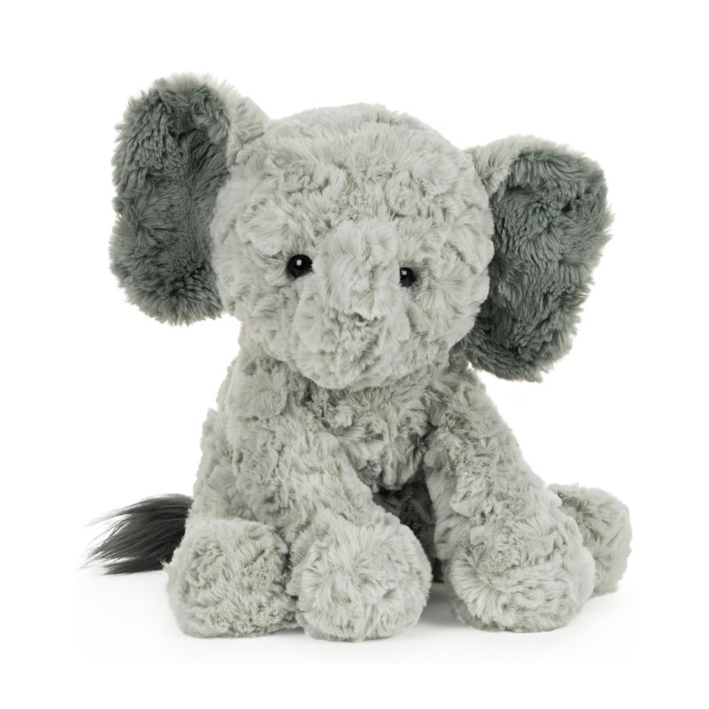 COZYS COLLECTION PLUSH ELEPHANT: This adorable elephant stuffed animal sits 10” tall and features oversized ears, a long trunk, soft, floppy limbs, and rippled grey fur. It also has a slightly under-stuffed body that makes hugs feel even sweeter