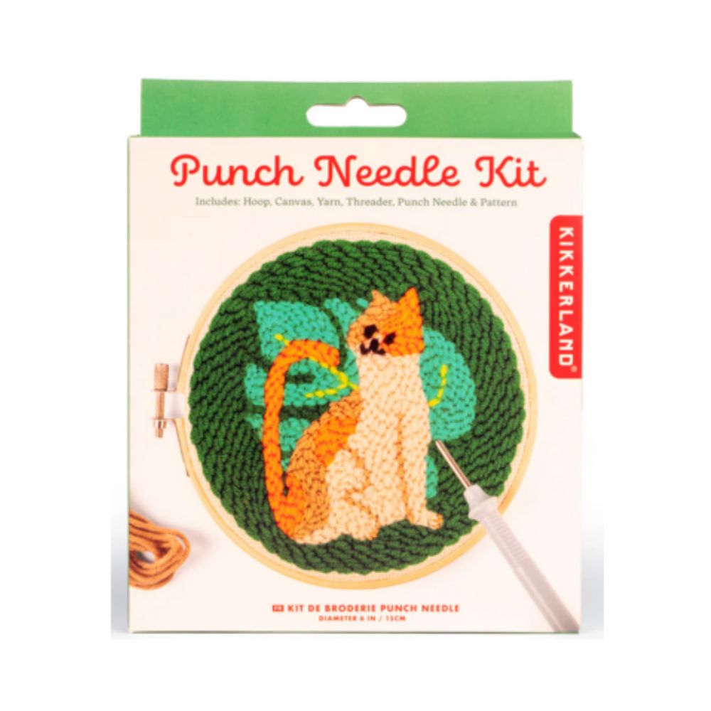 Learn the traditional handicraft of punch needle or rug hooking and create your very own miniature tapestry. Kit comes with everything needed including: 1 adjustable bamboo hoop, 1 punch needle, 1 needle threader, 1 cotton cloth with printed template, and plenty of yarn to complete the design.