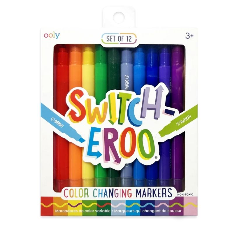 Switch-Eroo Color Changing Markers surprise and delight with one regular color and one mystery color change. Color with the regular side, then use the mystery color change side (white tip) for a wonderful transformation. Add an extra artsy layer with this amazing set that is sure to spark happiness.