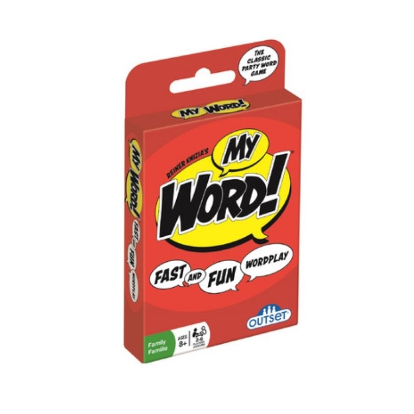 Outset Media’s My Word! is the word game that plays like a party game! Quickly search for words while single and double letter cards are dealt onto the table. The first player to call out a word using at least three cards wins those cards. Fast and fun, My Word! appeals to fans of word games and party games alike!