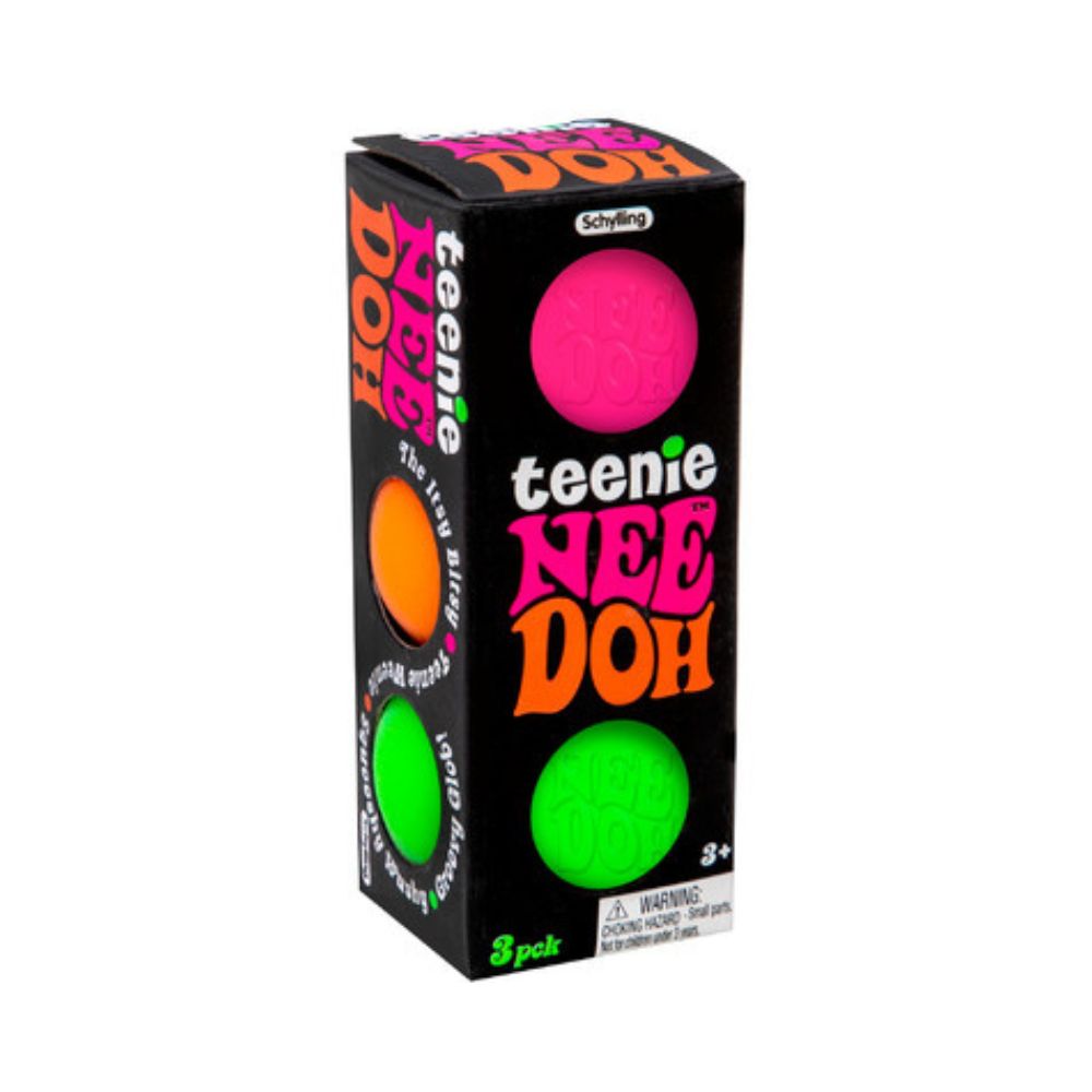 This teenie stress ball will help you mellow out! Feeling Stressed? Then you knead teenie Nee-Doh! Grab a teenie glob and give a squeeze. The experience will blow your mind, soothe your soul, and have you feeling groovy in no time! Includes 3 Teenie Nee-Doh per package. Ages 3+.