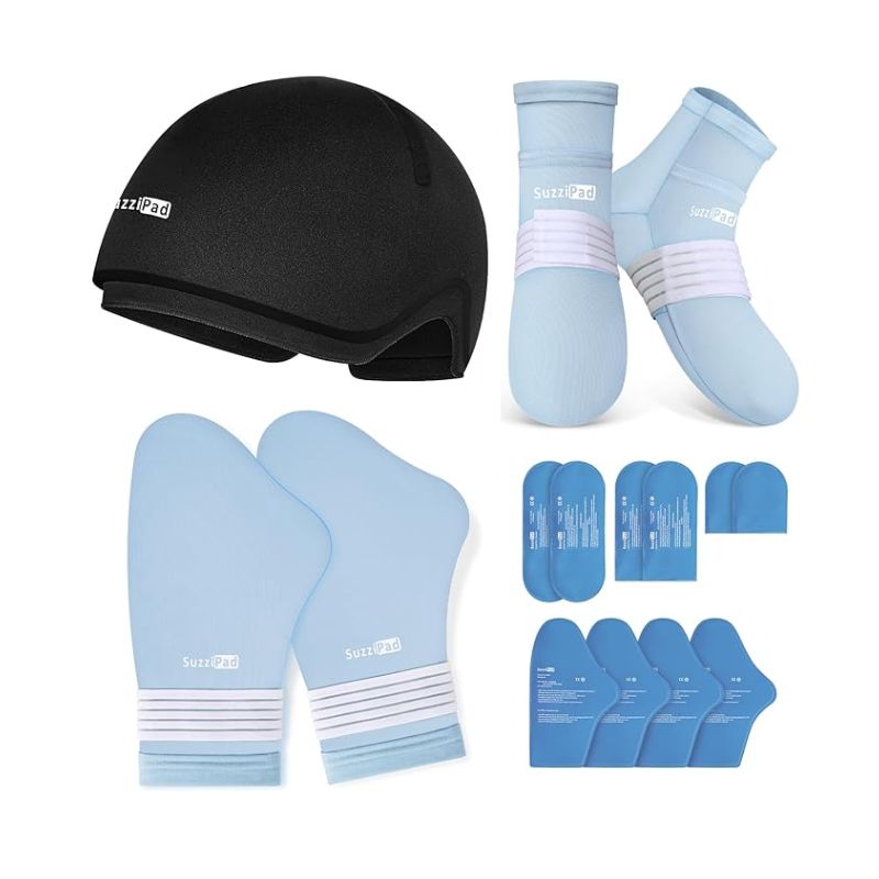 - Comforting Package for Cancer Patients: The chemo cold cap, suzzipad cold therapy socks, and hand ice pack are specifically designed for chemotherapy patients to avoid the potential side effects of neuropathy. This combo contains one pair of neuropathy gloves, one pair of cool socks, and an ice pack for the head. Just chill the cold gel packs in the freezer for 2 hours before use, then enjoy up to 20 minutes of soothing cold therapy—a convenient, comforting package for cancer patients.