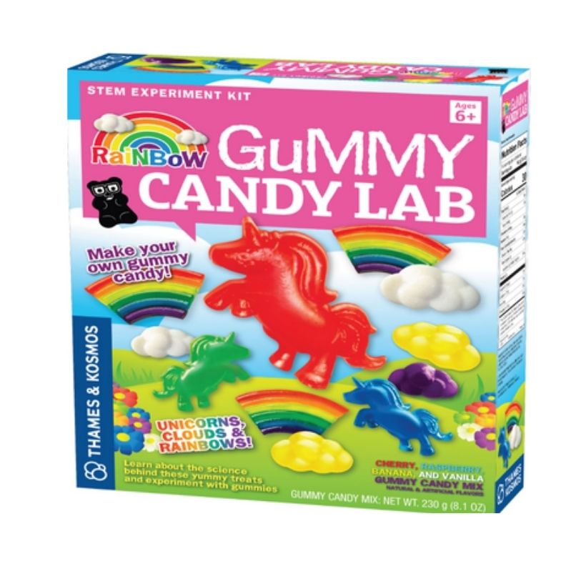 Unicorns, clouds, and rainbows … oh my! Make your own delicious, fun gummy shapes using a gelatin mixture: Pour it into the included mold and concoct a spectrum of flavors and colors to personalize your unicorn, cloud, and rainbow-shaped gummy creations. You can even add citric acid to make sour gummies. Bonus: Learn about the scientific properties of natural polymers as you cook up these delicious treats! This kit includes all the food ingredients needed for a rainbow-gummy good time.