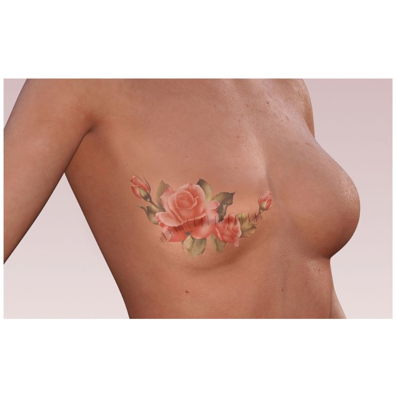 A vibrant and delicate rose vine temporary tattoo will make you feel confident and beautiful. Safe, non-toxic, realistic and easy to apply and remove. Waterproof, even in sun, salt and chlorine, and lasts 5-7 days. Comes with right and left breast tatttoo. Works great on mastetcomies and breast reconstruction scars!