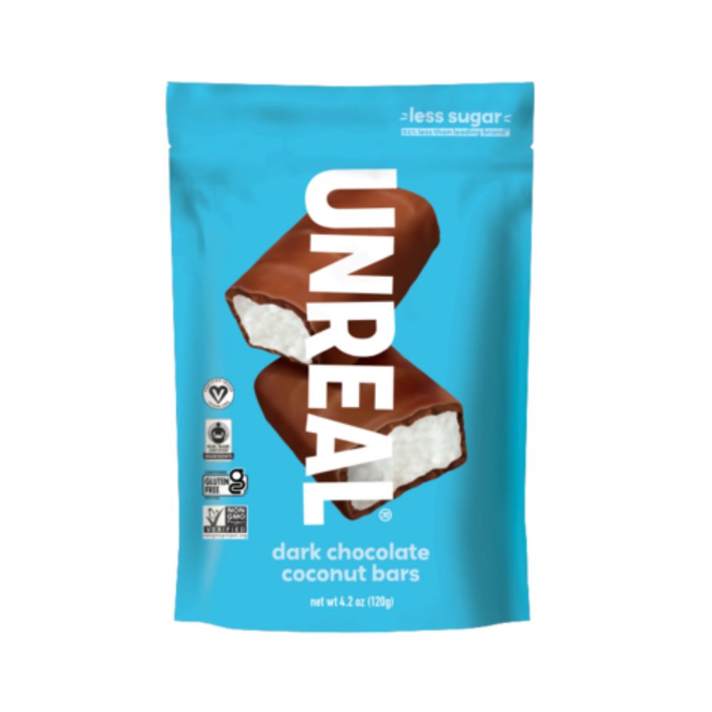 Unreal was started so everyone can enjoy out of this world, all real chocolate snacks without all the sugar. These coconut bars are made using only coconut, cassava syrup and dark chocolate. They’re non-GMO, gluten free and sweetened without corn syrup or sugar alcohols. They just use less sugar. For real. And the taste is UNREAL.